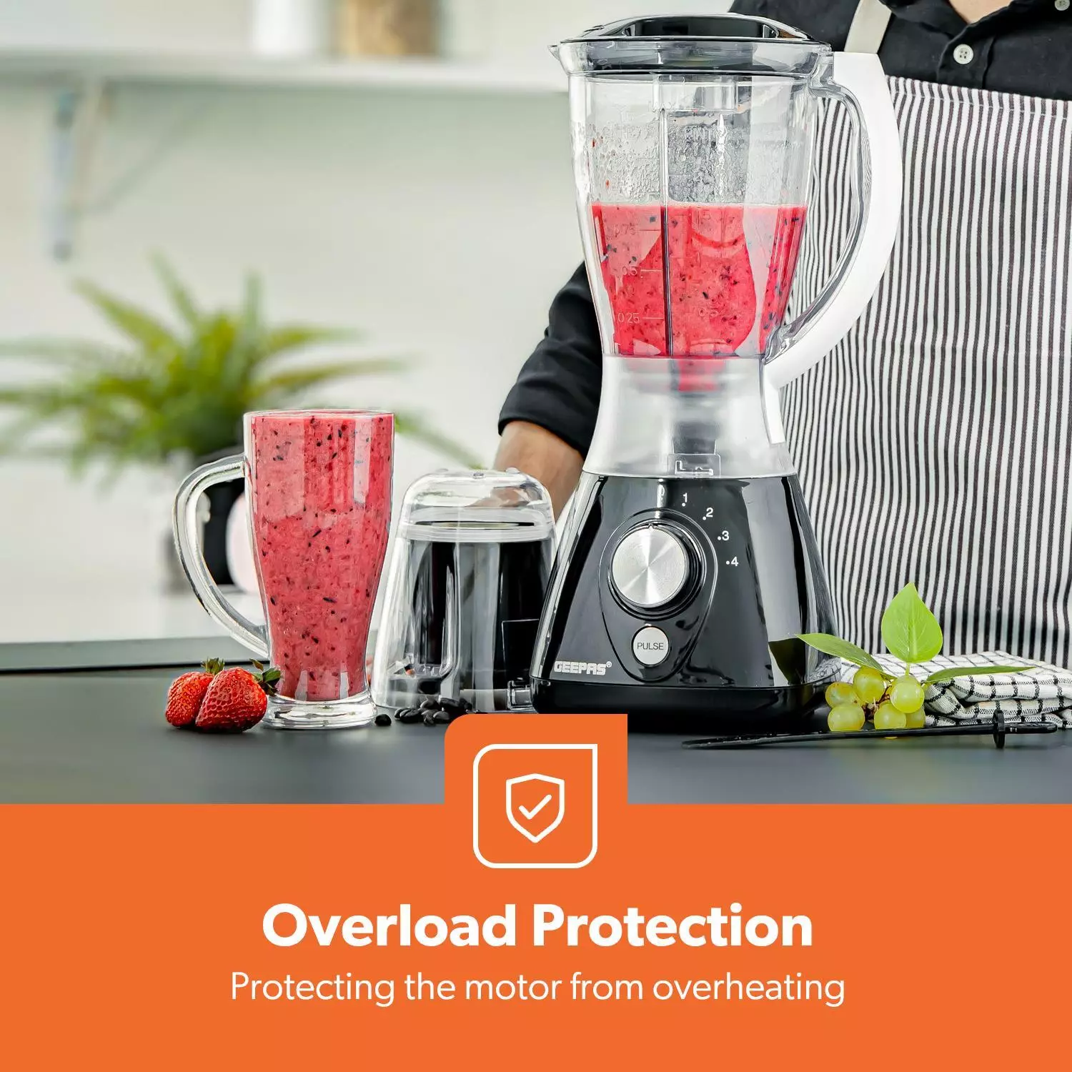 1.5L JAR, SMALL COFFEE/SPICE MILL INCLUDED - With a jar this big you can blend huge amounts of fruits & vegetables. It helps to save time on cutting fruits or vegetables & instantly get a glass of tasty & healthy juice within a few seconds. And with coffee mill attachment lets you coarsely chop vegetables, nuts, spices, and coffee beans, espresso beans, seeds and anything else that needs ground up.