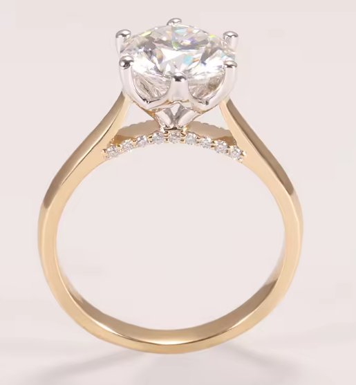 Style: CLASSICMaterial Type: Yellow Gold Diamond shape Round Brilliant Cut Pearl Type Main Stone Setting Type: Prong Setting Inlay technology Claw Setting Material:18K Yellow Gold Type: Moissanite