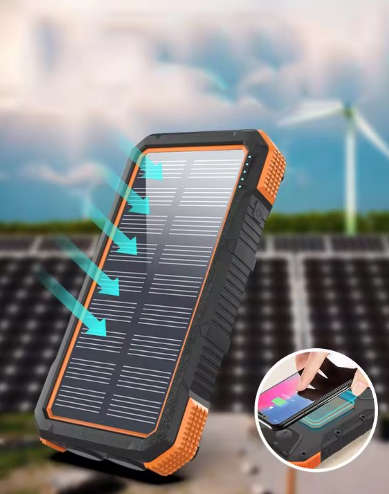 20000mAh Solar Power Bank Wireless Charger 3 USB Portable External Battery Charger Power Bank