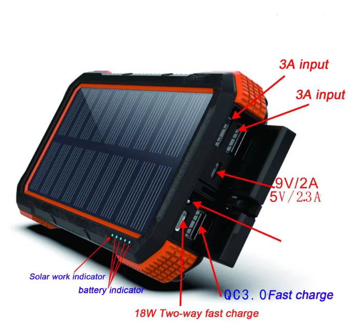 | Low Tension Other attributes Function | Quick Charge Support, Solar Panel Charge, LED Display, |