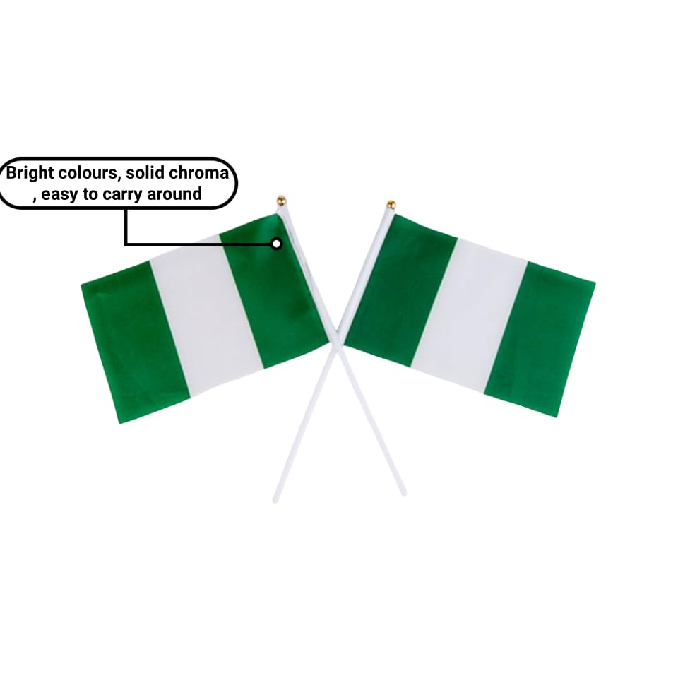 50Pcs Small Nigerian Flag on Stick 14x21cm Mini Waving Nigeria Flag Plastic Flagpole Single Side Flag Small Flag Parade World Cup International Festivals Party Decoration Supplies Election Support