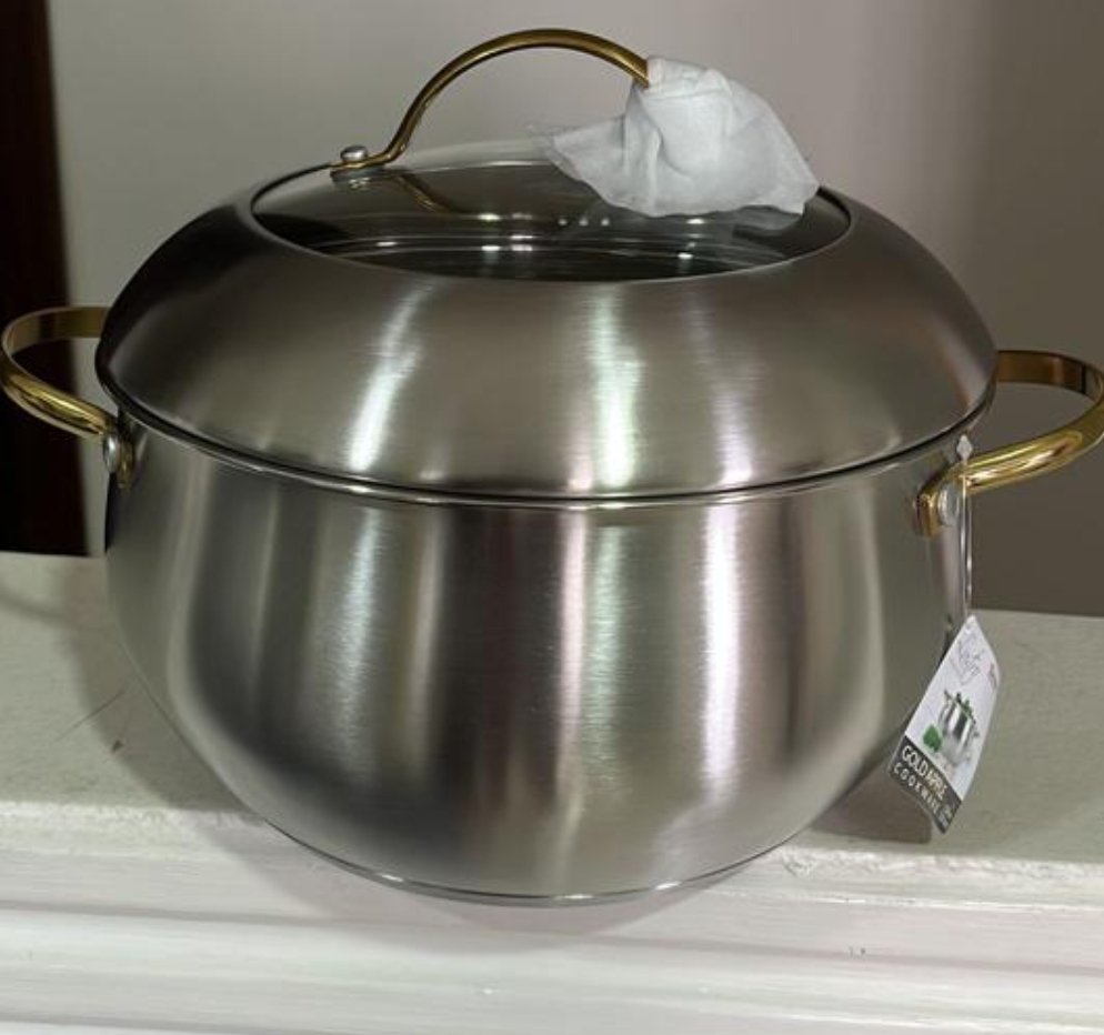 6pc stainless steel cookware. Gold Apple (lustro) is the brand.