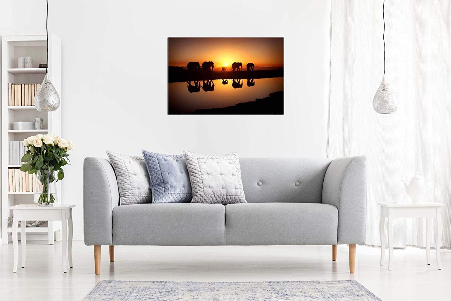 African Sunset Elephants Nature Wildlife Canvas Hand made wall art picture print. Made with top-grade materials and beautiful colours This Beautiful Canvas wall art Will brighten up your home