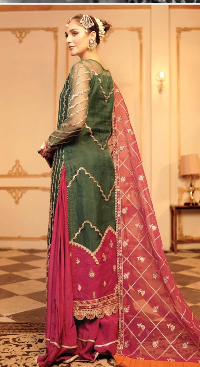 1- Embroidered front organzaEmbroidered front and back borderEmbroidered back organzaEmbroidered sleeves borderEmbroidered dupatta organzaEmbro