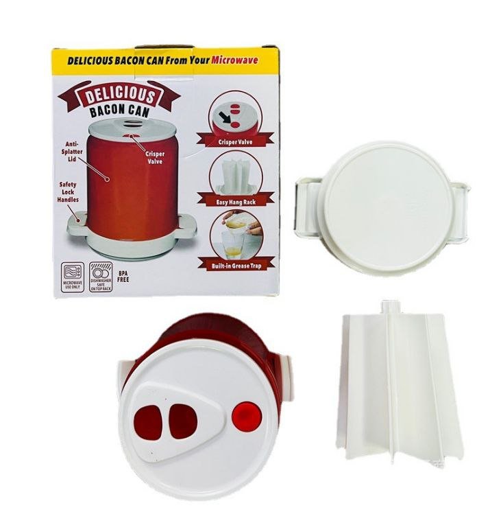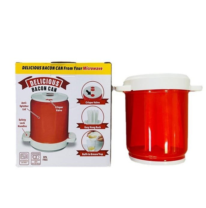 Product Details Description Introducing the Bacon Can™ to you on Upfrica. Our special splatter-proof design delivers mess-free bacon every time. The secret is the microwave-safe dome that creates heat convection so your bacon cooks evenly. It's red and white in colour. The vertical rack keeps the bacon separated and grease collects neatly in the bottom. So why keep making bacon the old-fashioned way? Even when you’re in a hurry, just pop Bacon Can™ in the microwave, and you’ll be enjoying yummy, crispy bacon in no time!Key Features The vertical rack keeps bacon separated Grease collects at the bottom, compact and lightweight Red and White in colour Easy to clean Easy to store What’s in the box?Delicious Bacon Can ×1Specifications Weight (kg): 0.3Color: Red and White Main Material: Quality Plastic