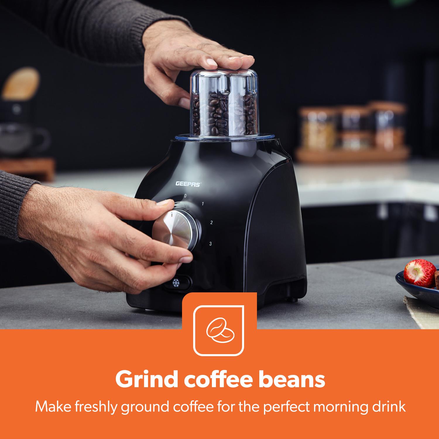 Geepas 2-in-1 multifunctional blender can mix, blend soya bean milkshake, smoothies, vegetables, fresh milkshakes and these are not the last of its features from a whole list. In seconds you can create cool, smooth and great tasting drinks and smoothies containing all of the nutrients and vitamins of your favourite fruits and vegetables. Simply put fruits and vegetables and close the lid then press the button to blend your drink. Powerful 600W motor and specially designed stainless-steel blades, creating pulse, and blending patterns