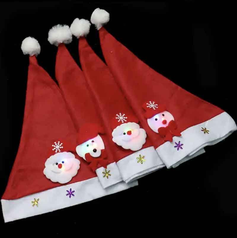 1- Product Name: LED Christmas Hat For Xmas Party DecorationMaterial: Non WovenType: Santa Claus; Snowman,ReindeerUsage: Promotion, Party, Conc