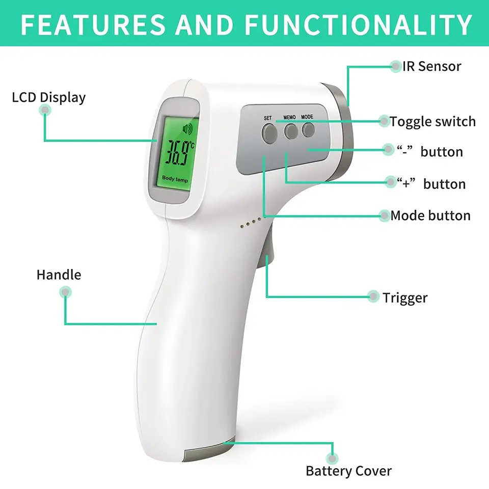 Thermometer Type: Digital Type: Household Thermometers Product Type: Thermometers Material: Plastic Model Number: YSD-0068NORMAL: Green--35-37.4"C ((95-99.3"F)Low: Orange--37.5-37.9"C (99.5-100.2"F)High Fever: Red--38.0 43.0"C (100.4-109.4"F)