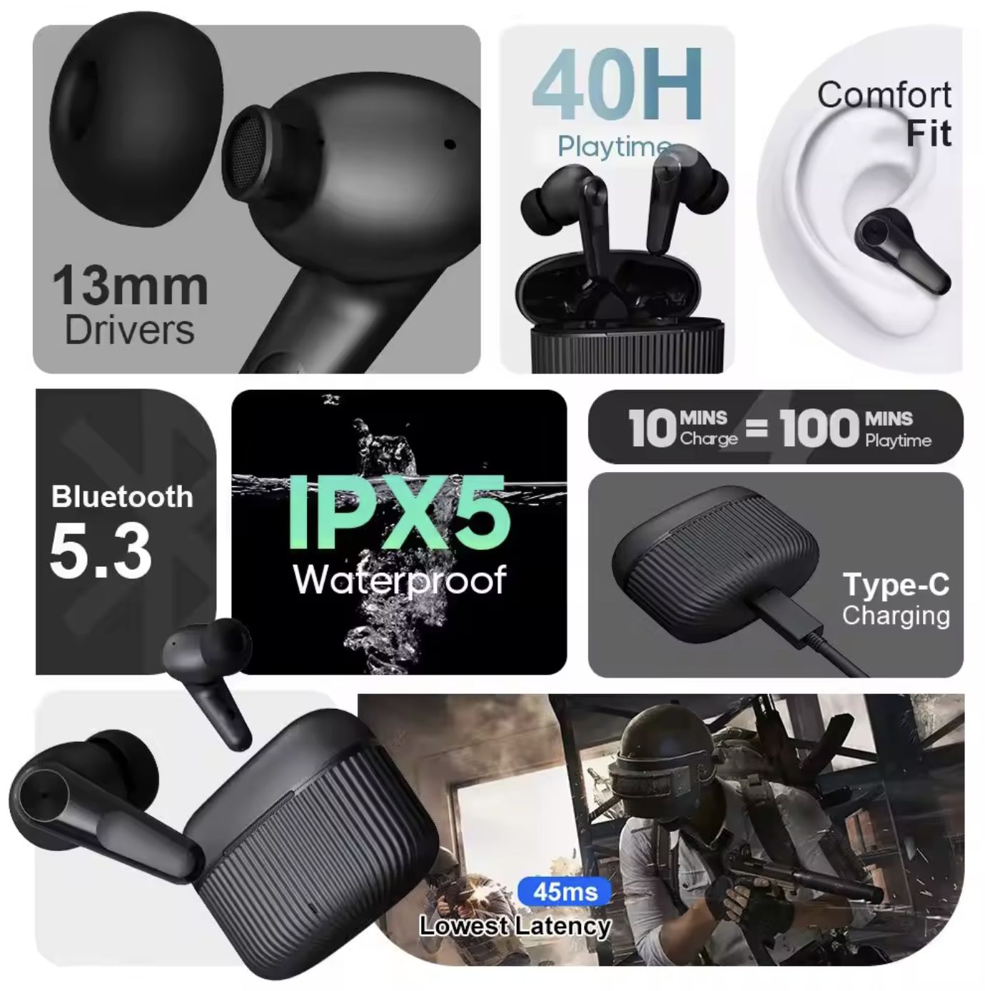 Use of ENC TWS Waterproof Sport Earbuds: Mobile Phone, computers, Travel,Hi Fi Headphone, Portable Media Player, Gaming, Sports, i Pod, PROFESSIONAL,Dj Game atmosphere light: no light Control Button: YESActive Noise-Cancellation: NOModel Number of ENC TWS Waterproof Sport Earbuds: T15Support Memory Card: no Battery Indicator: LEDWireless delay time: 41-50 ms Waterproof Standard: IPX-5Volume Control: Yes Style of ENC TWS Waterproof Sport Earbuds: Earbuds Vocalism Principle: Other Bluetooth Standard: bluetooth5.2