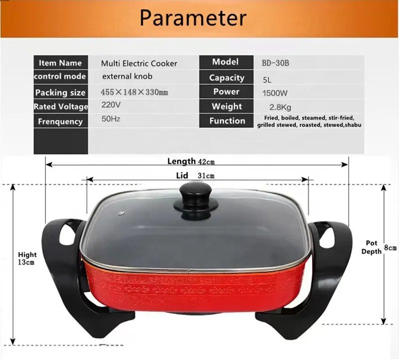 1- Product name: electric hotpotLid Material: GlassBody Material: AluminumFunction: Non-Stick Coating, Heat Control, temperature control, Non-s