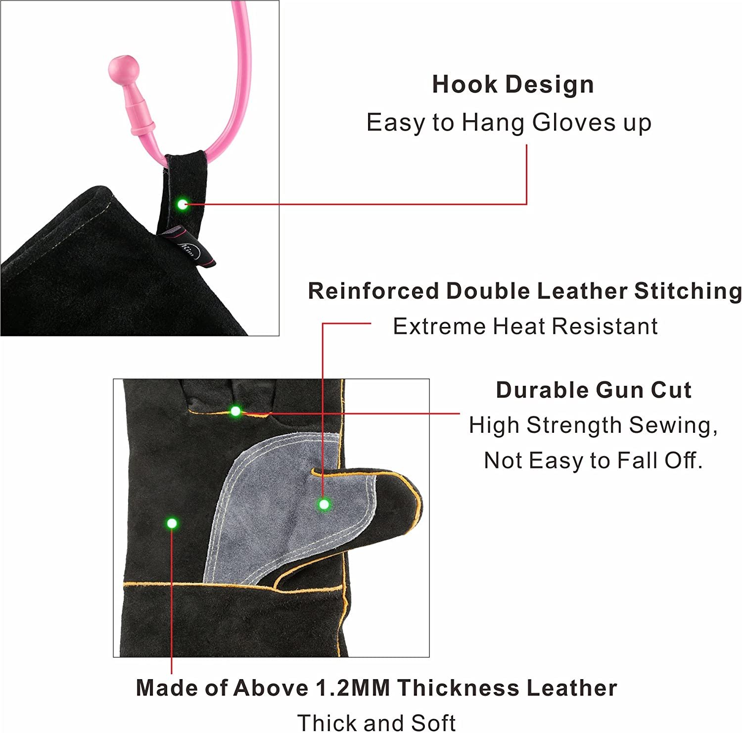 Fire Resistant & Extreme Heat Welding Gloves Leather with Kevlar Stitching,Perfect for Fireplace, Stove, Oven, Grill, Welding