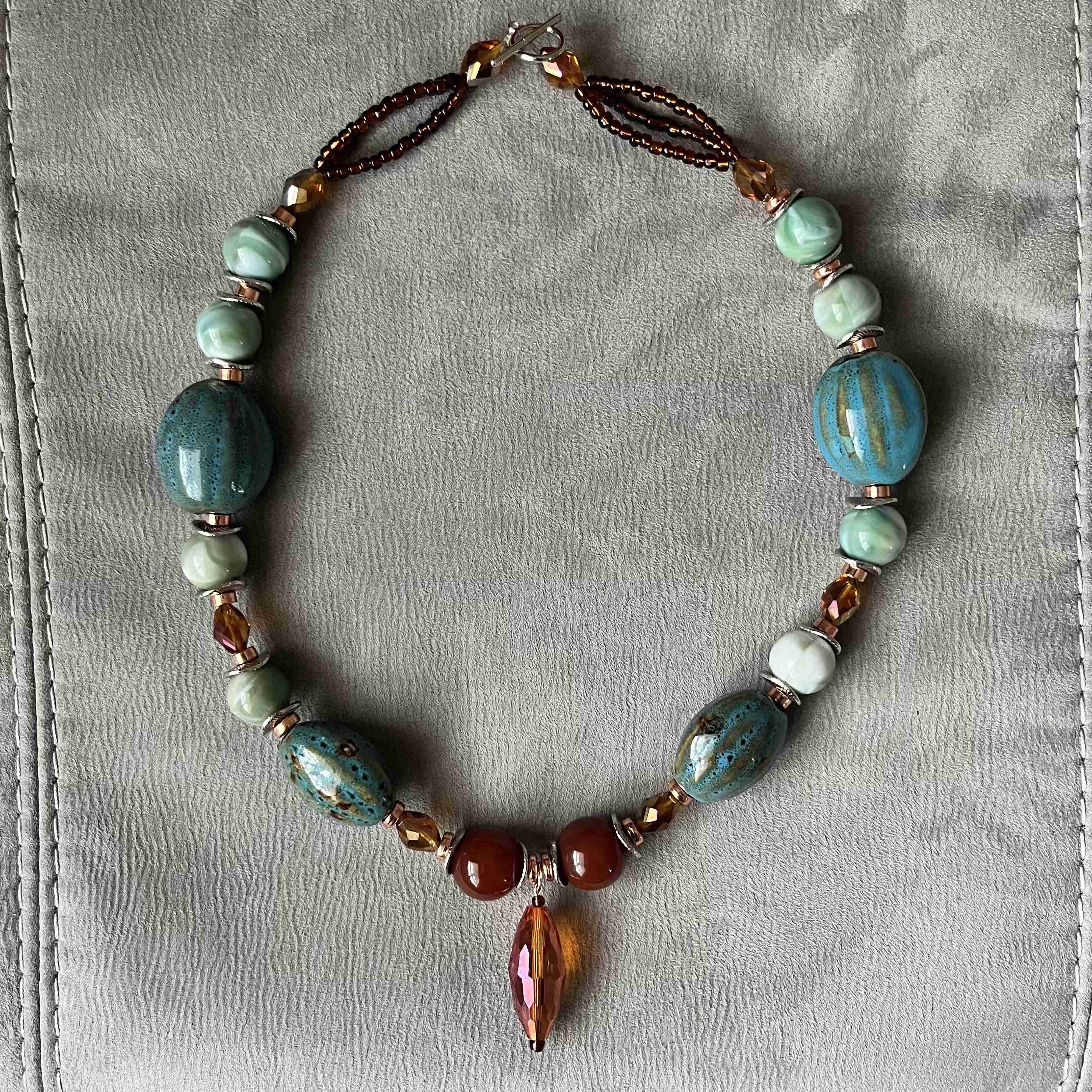 Handmade item Dispatches from UKNecklace length: 28 Inches Chain style: Bead Colour: Turquoise blue & Brown