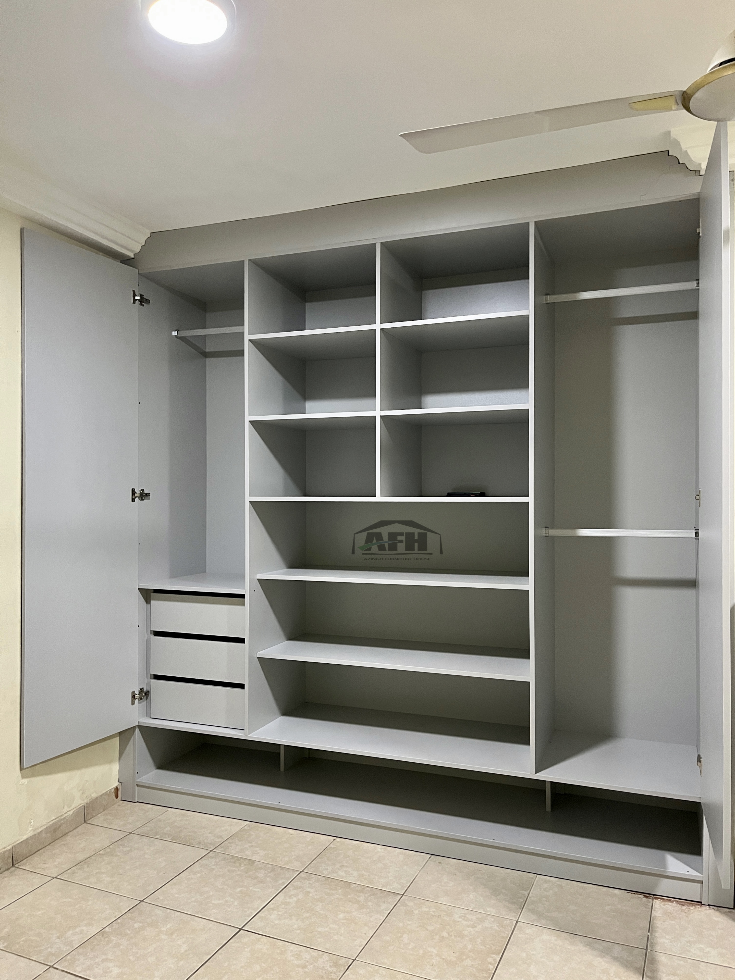 Finding storage solutions that truly fit your lifestyle and maximise every inch of available space can be difficult. That is why we build custom.This is a fitted built-in wardrobe to help you in all available space inside your new bespoke wardrobe. It's important to organise your wardrobe with some shelving and hidden hanging space, hidden drawers, shoe racks, and shelves. Our custom-made fitted wardrobe designs maximise your space, providing the ideal bedroom storage solution wherever you need it.Our built-in wardrobes are wall-to-wall and floor-to-ceiling, with no top, side, or back panels.AFH fitted wardrobes, as opposed to freestanding and standard built-in wardrobes, do not waste any space.