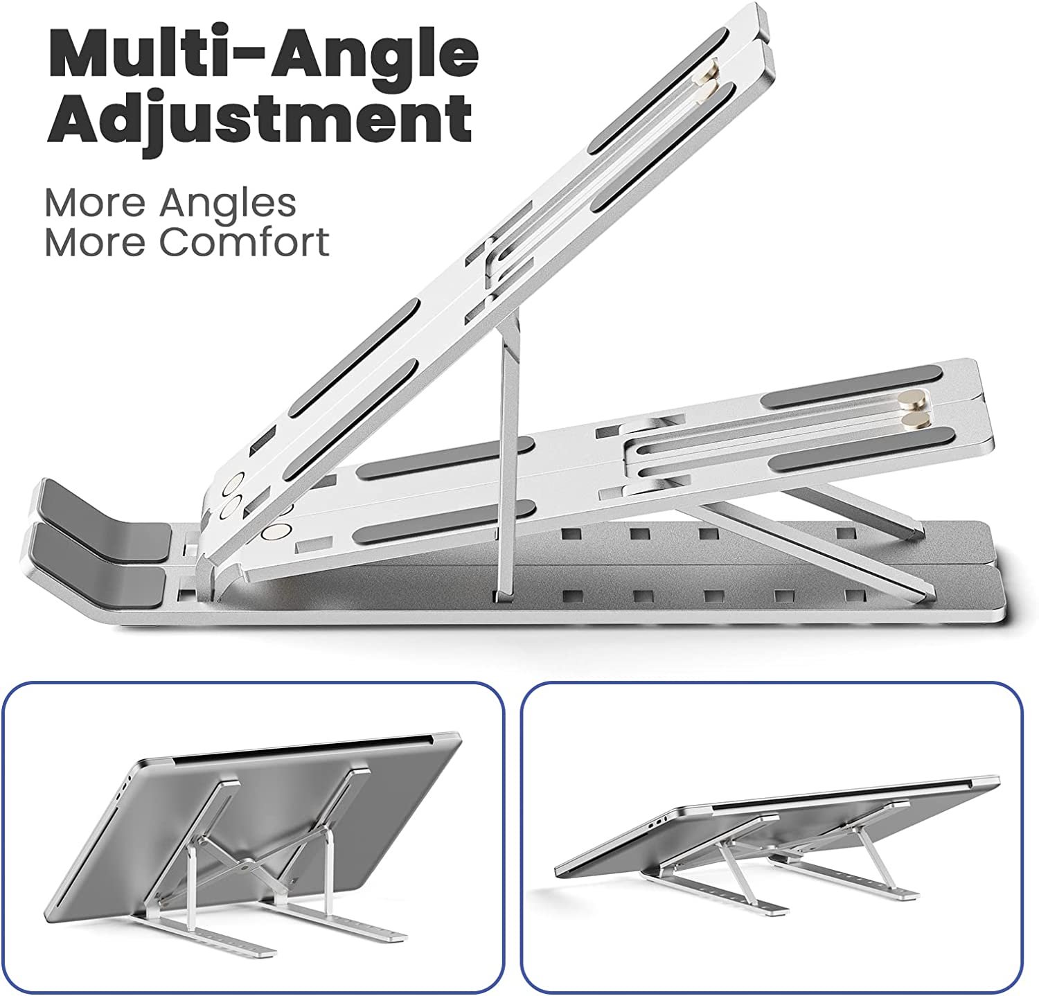 AVAKOT Portable Laptop Stand Computer Stand for Laptop Ergonomic Aluminum Laptop Stand | Adjustable Laptop Riser Notebook Holder Stand Compatible with MacBook,iPad,Dell,Lenovo 9-15.6" Laptops | Silver