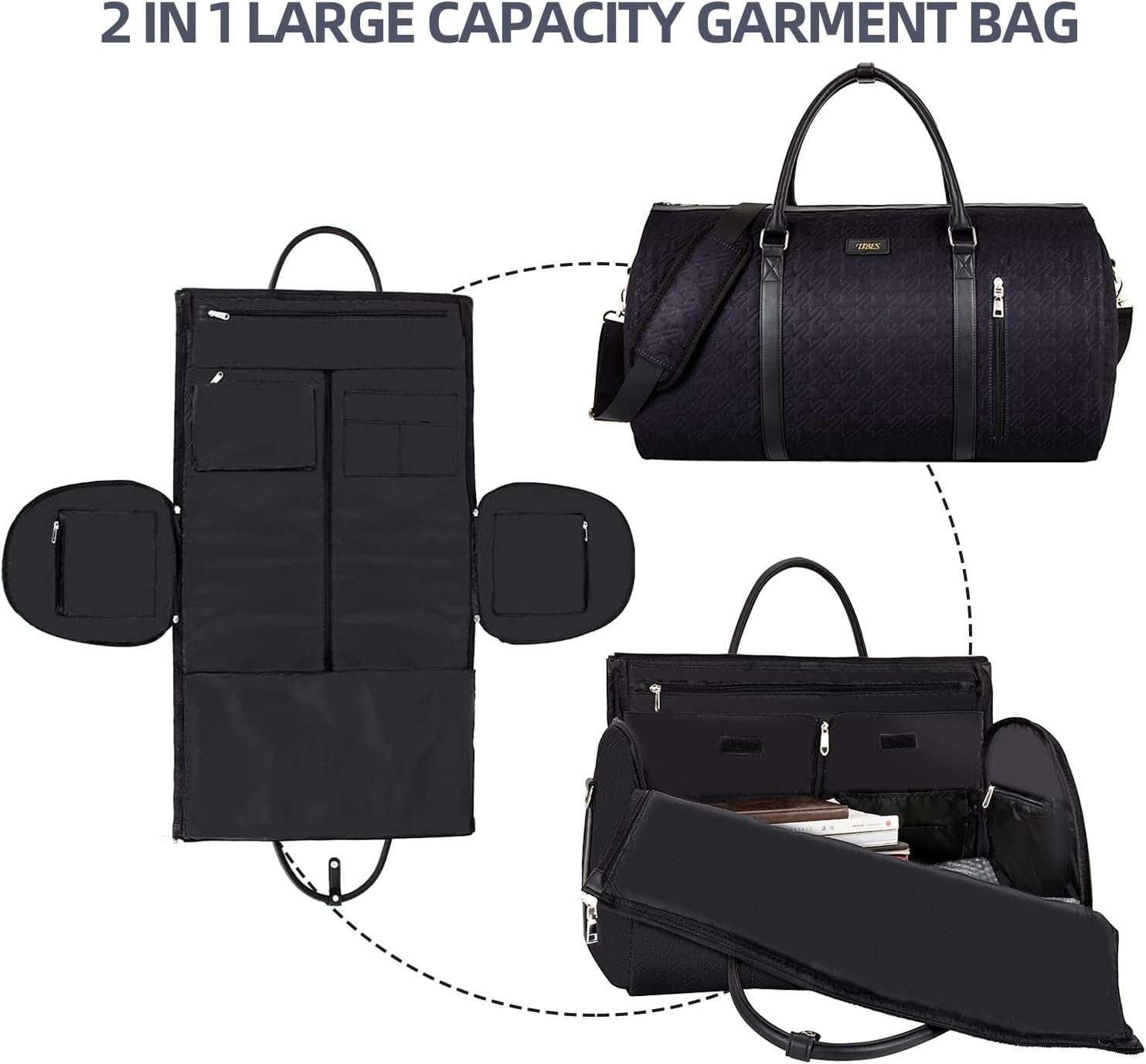 2- Garment Bag for Travel Convertible Carry On Garment Bag Large Travel Duffel Bags for Women 2 in 1 Hanging Suitcase Suit Travel Bags for Wome