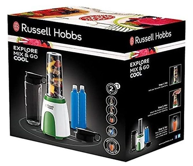 Russell Hobbs Blender - 'Explore Mix and Go Cool' Smoothie Maker with 3 Portable Blending Bottles 25160-56