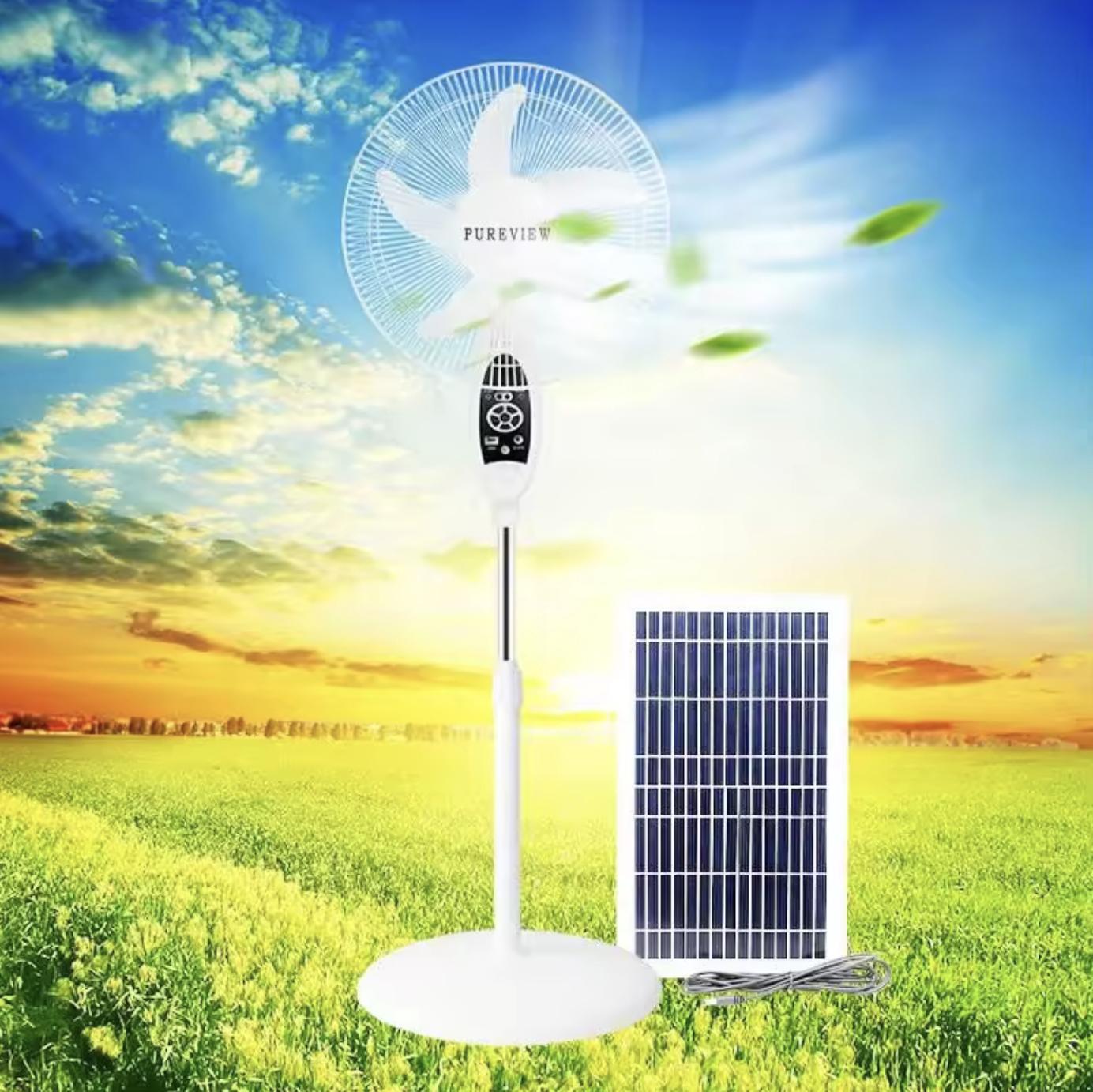 1- Type: Solar Electric Rechargeable Fan, Emergency Air Cooling FanPlease select 16 or 18inches for their prices Brand Name: PureViewModel Numb
