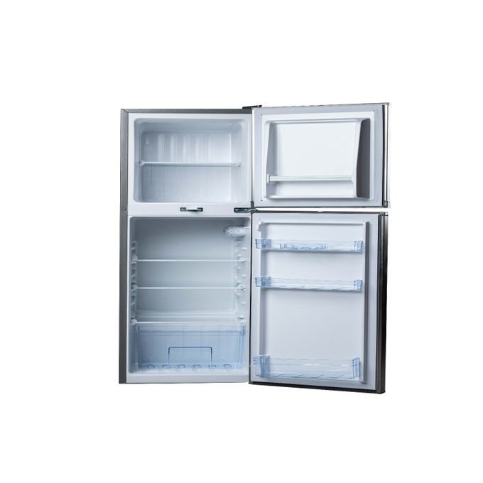 - With its compact size and double-door design, this refrigerator offers enhanced storage capacity while fitting perfectly on countertops or t