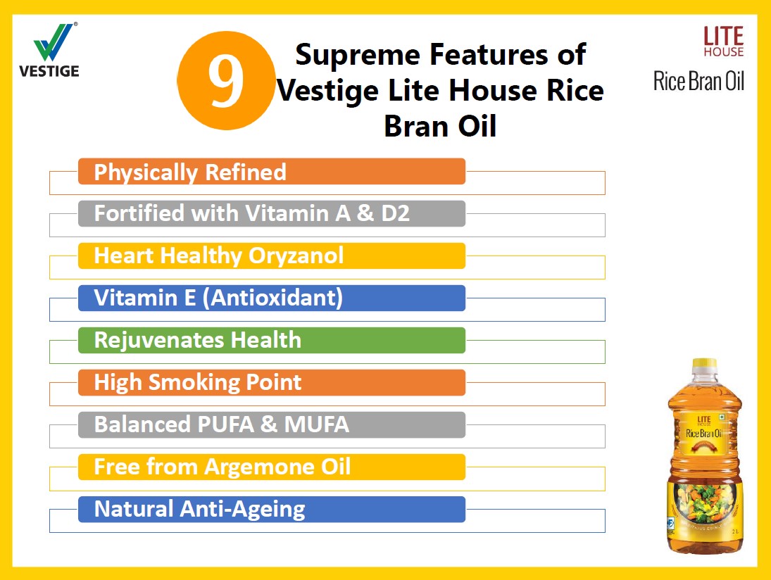 2- Vestige Rice Bran Oil is a premium quality, heart-friendly oil enriched with Oryzanol, antioxidants, and essential nutrients.