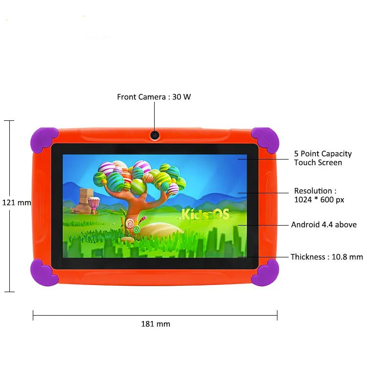1- Kids Tablet Screen Size: 7"Scenarios: FOR KIDScharging interface: Micro-USB Drive Interface:Micro USB After-sales Service:Call Center and on