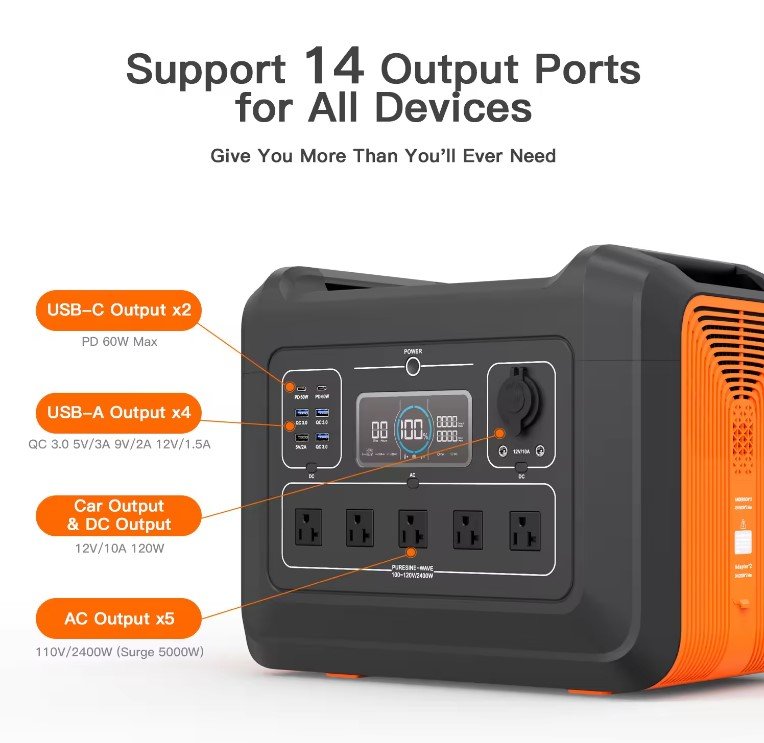| Pure Sine Wave Special Features | Type C, Flashlight, jump starter, RV Port, Cigar Lighter, Air Compressor, Portable System Voltage;48 |