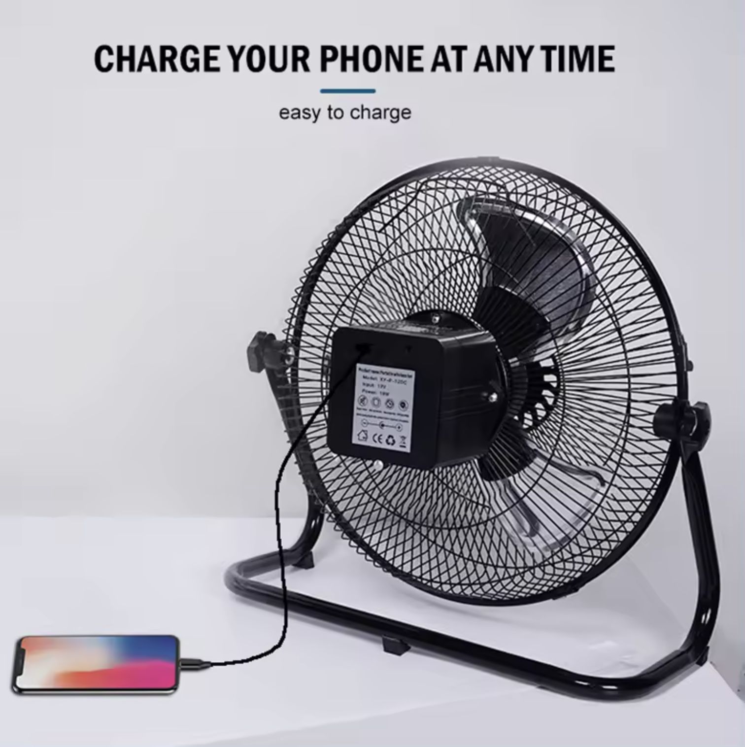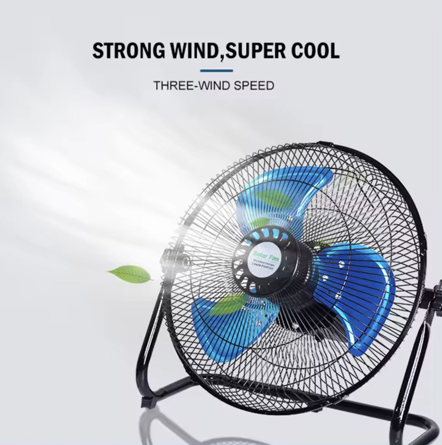 1- Material: IronDimensions: 12inch, 39(H)x39(W)cmSize: 12inchPower: 25WProduct name: AC DC Table FAN With Solar PanelPower Source: 25WBattery:
