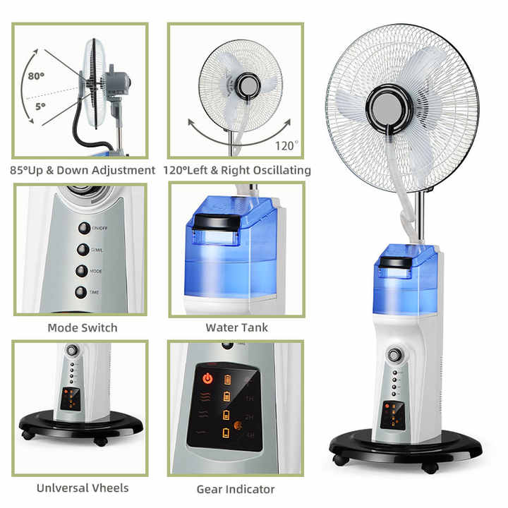 | speed cooling stand 16 inch water mist fan rechargeable Size | 437*437*1013mm Power supply AV 110 V-240 V + |