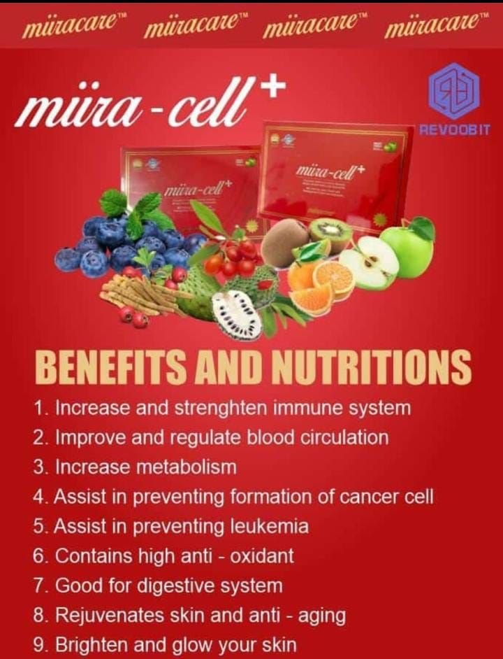 REVOOBIT MIRACELL+ 24 Sachets in a pack (2 boxes with 12 sachets in each box)📍What Is Miiracell Plus?Miiracell plus- Is a plant based stem cell that triggers, activates, and stimulates the progenitor cells in the bone marrow to release millions of circulating stem cells in the body, these are responsible for the day to day renewal, repair, restoration, rejuvenation, maintenance as well as revival of weak/ dead cells, tissues and organs our our human body📍What Is Miiracell formulated to do?Miiracell has been formulated by an expert in the field of stem cell research to nutritionally support the metabolism of bone marrow enabling it to produce more stem cells. By doing so, your body will have a greater ability to restore and rejuvenate itself.Hence, health issues such as Diabetes, Constipation, Liver Problems, Fertility issues, Insomnia, Ulcers, Cancer of any kind, athritis, eye problem, dementia, stroke, Heart Problems, Kidney disease, Migraines, epilepsy, tumours, brain related problems and any other chronic illnesses can be prevented and addressed by Miiracell+ Stemcell Miiracell is FDA Approved (USA) and ISO22000 Certified📍What happens as we age?As we grow older, our body’s production of stem cells declines steadily, at the very time in life when we are experiencing deteriorating mental acuity and strength, wrinkling skin, fading eye sight, and other signs and symptoms of aging – a time in life when we have greater need for tissue repair than ever before. When you are young, you produce a large number of stem cells; but after age 25, the number you produce continuously drops. Studies have shown that the more stem cells you have, the more effective is your ability to renew, repair, and slow down the signs and symptoms of aging.IN SUMMARY MIIRACELL IS VERY GOOD FOR ADRESSING EXISTING CONDITIONS AS WELL AS PREVENTING CHRONIC ILLNESSES