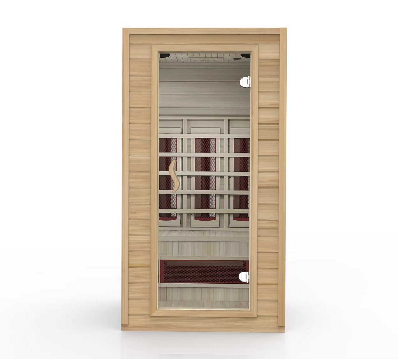 Solid Wood Construction – Premium Canadian Hemlock, Red Cedar, Pine, or Spruce options for natural durability Far Infrared Carbon Heaters – Delivers deep, even heat for detox and relaxation Compact 1-Person Design – Perfect for bedrooms, apartments, or private SPA rooms Modern Control Panel – Computerized controls with Bluetooth functionality Stylish Lighting – Built-in LED lamp and spotlights for enhanced ambiance Safety First – CE, ETL, GS, and other international safety certifications Clear Tempered Glass Door – Durable, sleek, and easy to clean Power Efficient – Operates on 1300W, 220V with low energy consumption A typical steam sauna functions by heating the air inside to remove impurities from the body.