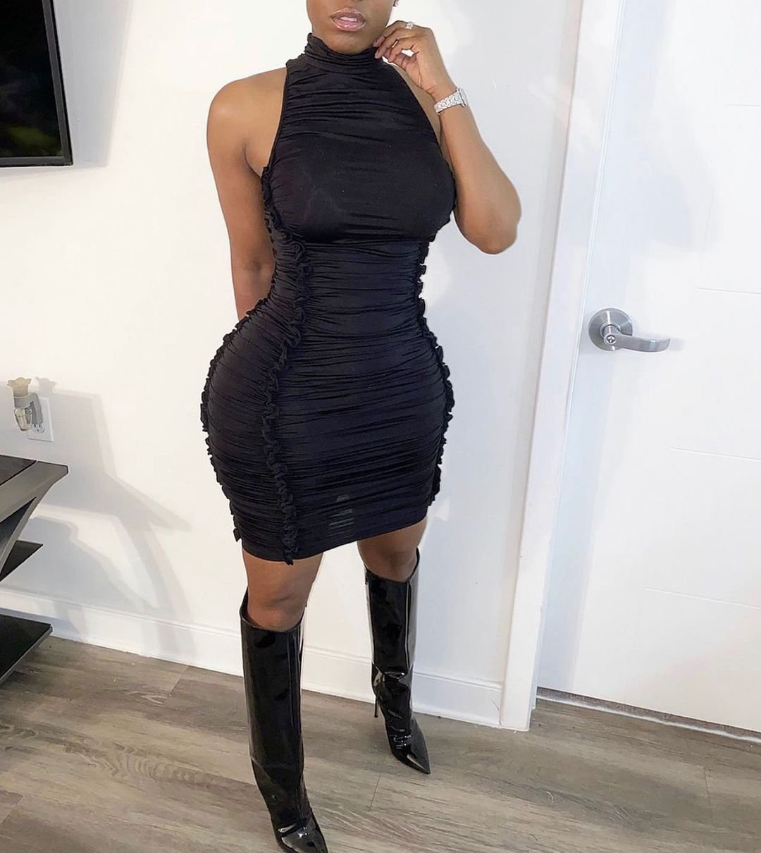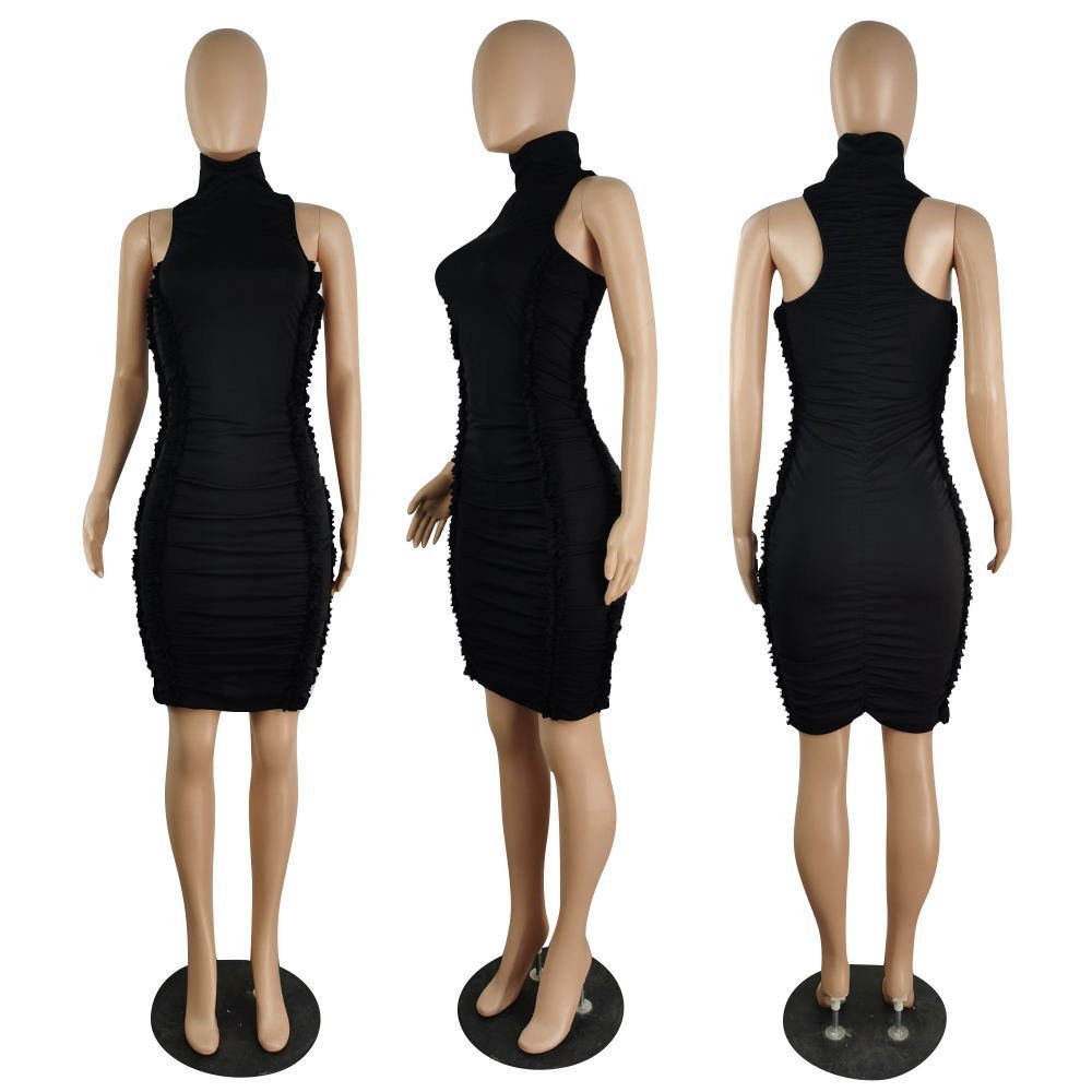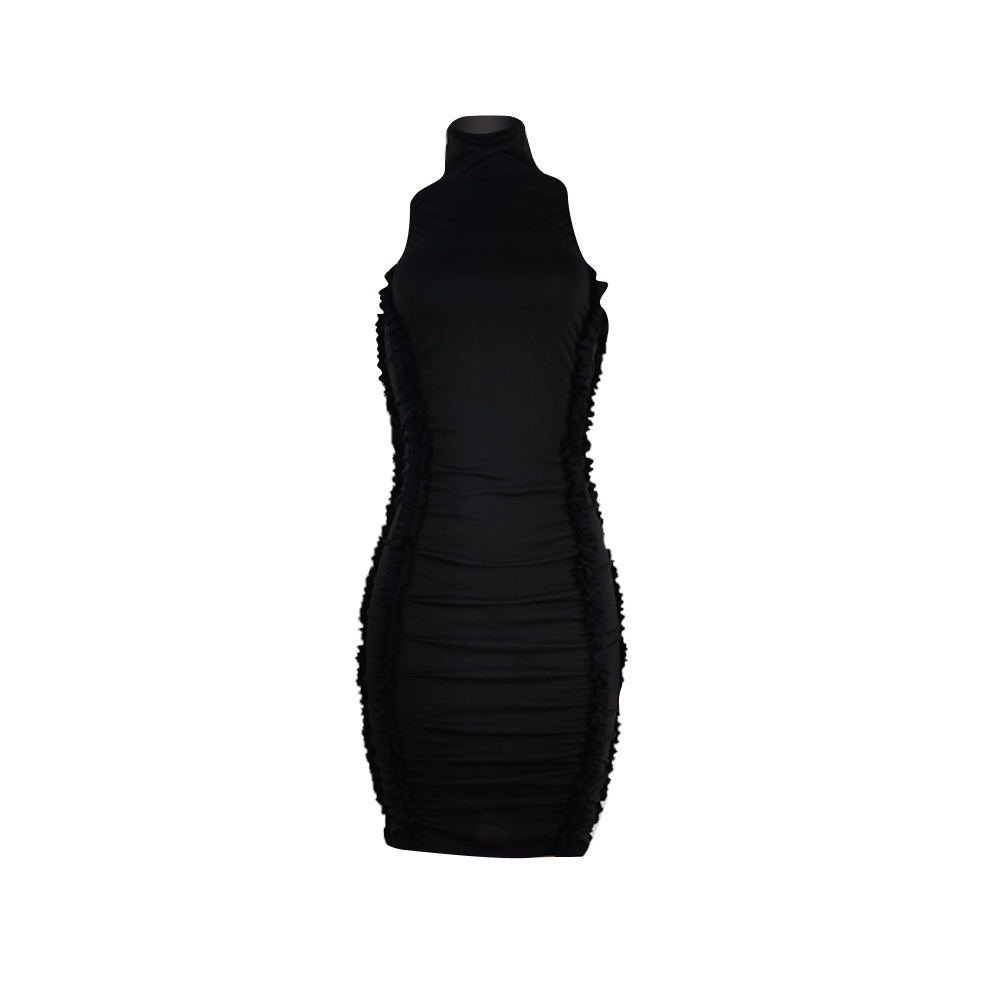Sleeveless black hot hip solid color wood ears clothes women dress