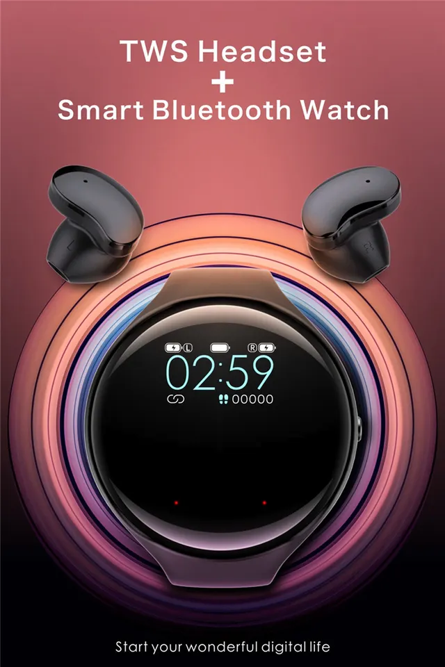 Smart watch with ear buds round design Smart Watch and TWS Earphone Waterproof Call Music Sport Fitness Bracelet Band