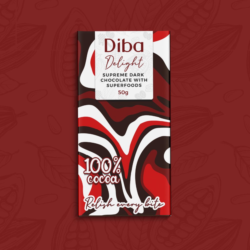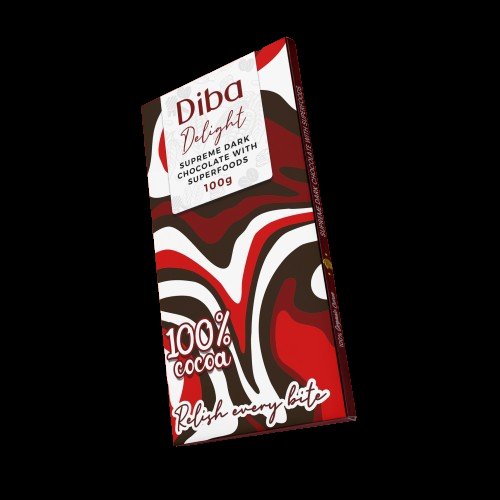 Diba Delight Supreme Dark chocolate is 100% organic cocoa, honey, and other superfoods. With this flavour, you will find traces of dates, resin, and cocoa nips. All these are put together into the healthy nutritious chocolate bar to delightfully melt smoothly in your mouth. Other Features It Comes in 100g, 50g, 20g, and 12g It has 100% organic cocoa content It has traces of dates, resin, and cocoa nips It has an Eco-friendly packaging All the sizes can be customized for companies and events