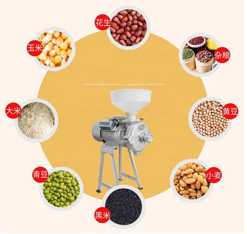 This Mini mill Grain Grinding Machine by the two covered with alveolar grinding and grinding wheel grinding on the principle of fast and uniform grinding of various wet and dry materials.the machine is a flow-type operation, precision, small size, light weight, high efficiency, easy operation, energy-saving security, no dust, low noise, especially for supermarket counters, whole grains processing shops, clinics and family pharmacies. Corn, sorghum, barley, buckwheat, etc.it is suitable for all kinds of dry herbs with Poria, red dates, Gorgon, Chinese wolfberry, barley, red pepper, green peas, Hawthorn, yam, shouwu, coffee beans and so on.Power | 2.2KW/3KWMotor revolutions | 1400R/Min-2800R/Min Fineness of product | 50-150Production capacity | 50-200kg/h Size | 77*32*34cm Adjustability | Feed rate (speed) and the material thickness can be freely controlled Characteristic | Flow-type (continuous feeding type) production