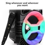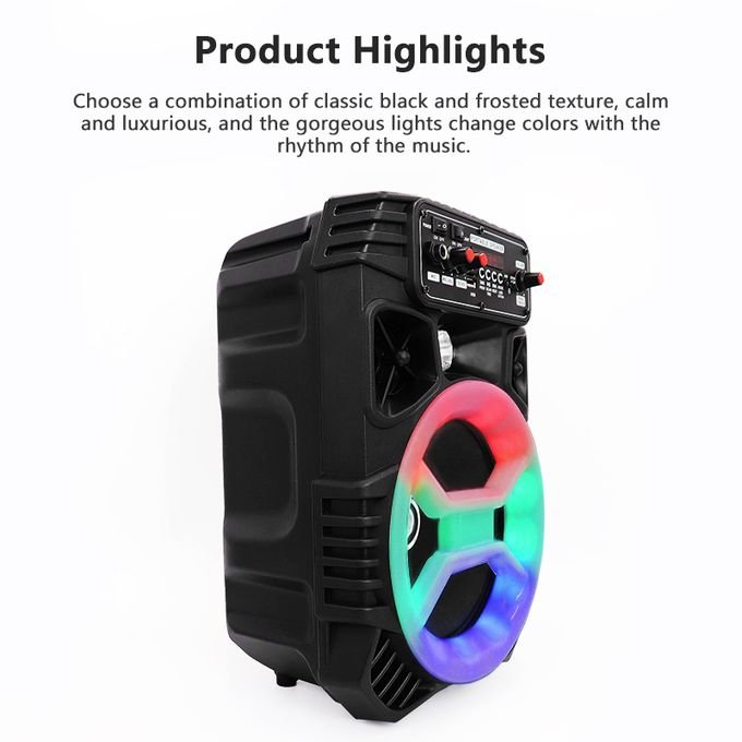 The WEYON 8 is a colour LED light outdoor portable Bluetooth speaker for home camping party stereo sound waterproof wireless speaker with a microphone.Whenever you go, the focus is on the lights flashing due to the strong rhythm.Driving the audience is easy because the lights and music are on time.Huge volume and enough power supply combine to produce a greater heavy bass sound than ever, giving you the utmost musical enjoyment.The reliable connection that prevents beat loss. Its stable connection makes you never miss a beat.Features High volume, colourful LED wireless FM radio with HIFI sound quality, portability, shock sound, and surround.The audio sound and microphone have independent volume control buttons, which improves the strong bass effect more than ever.Support U disc and TF card; to play a song, simply download it to a U disc or TF card and place it in the speaker.Enables audio cable connections and is compatible with digital audio players such as MP3 players and cell phones.