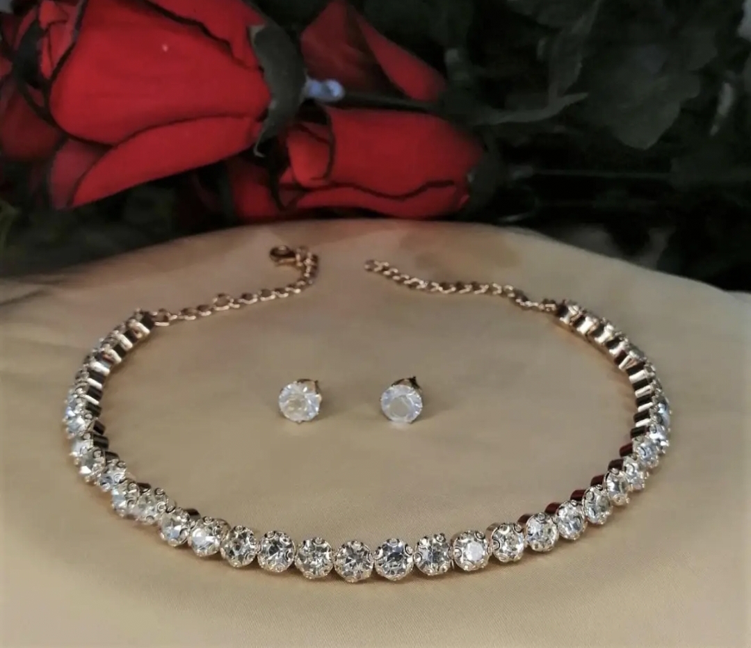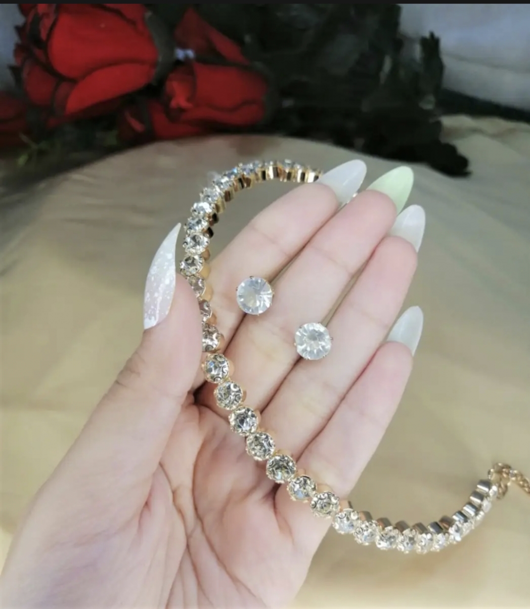 Rhinestone Choker+Earrings crystal Bridal jewellery sets shinning choker formal neckless
