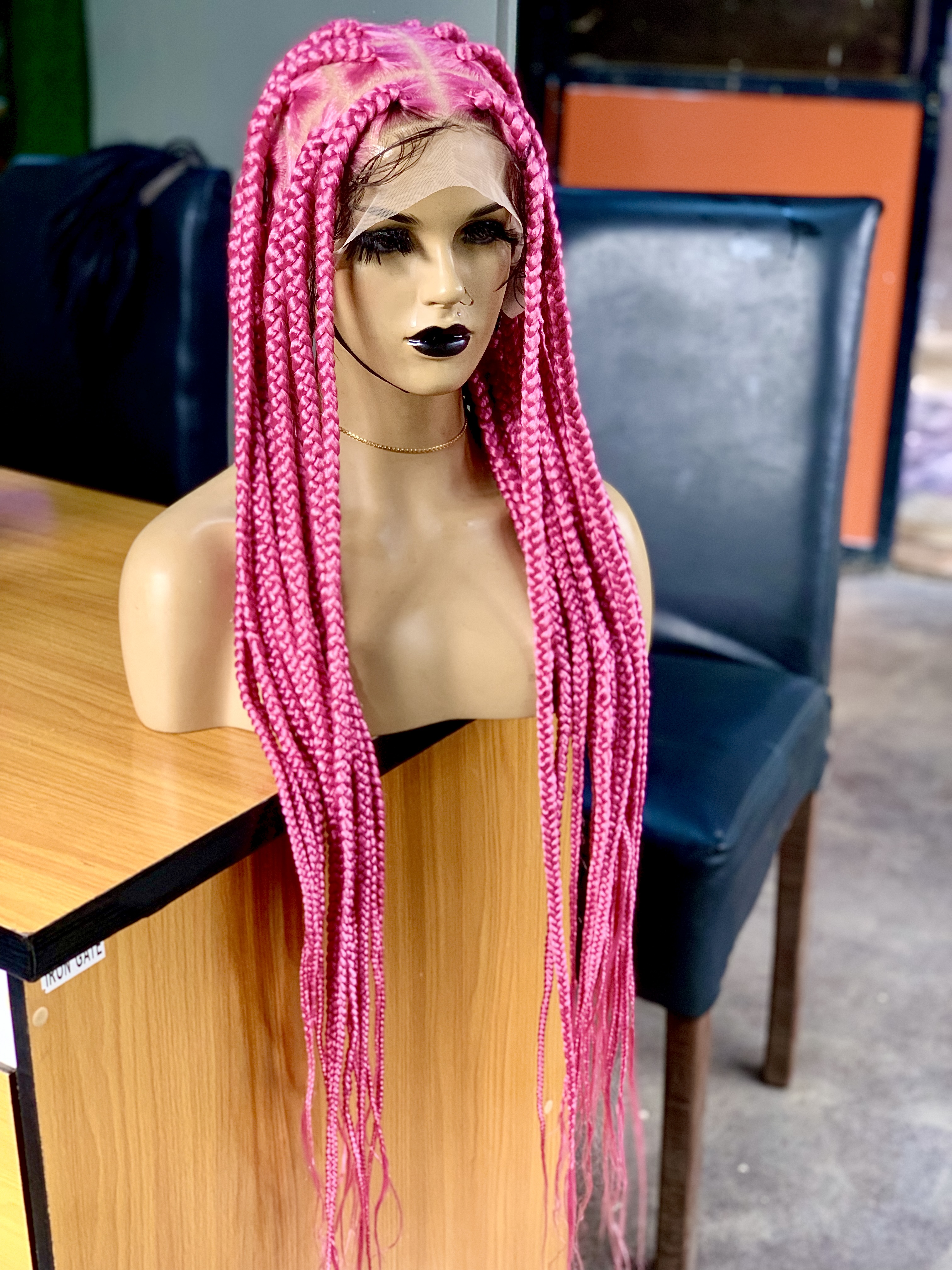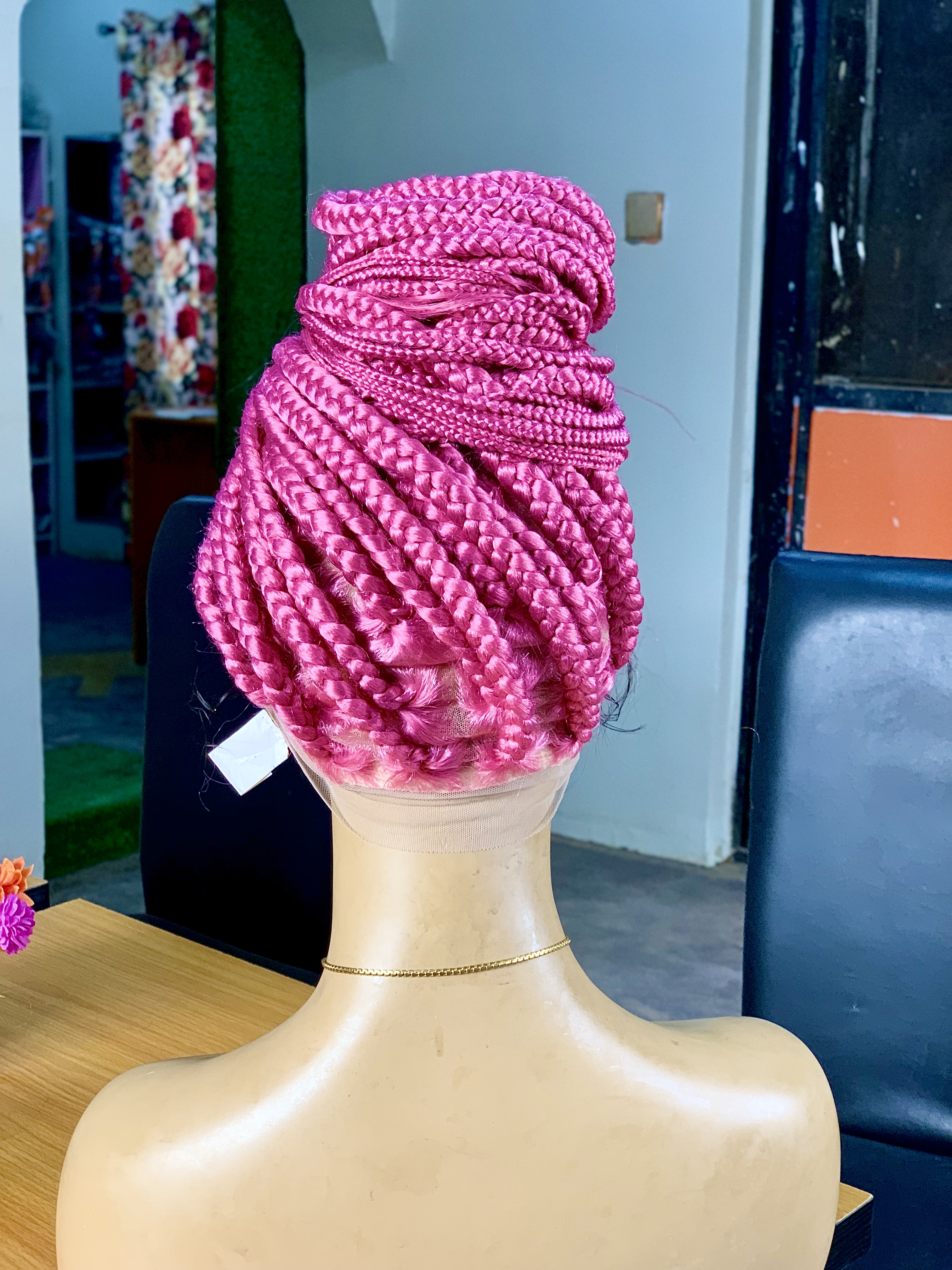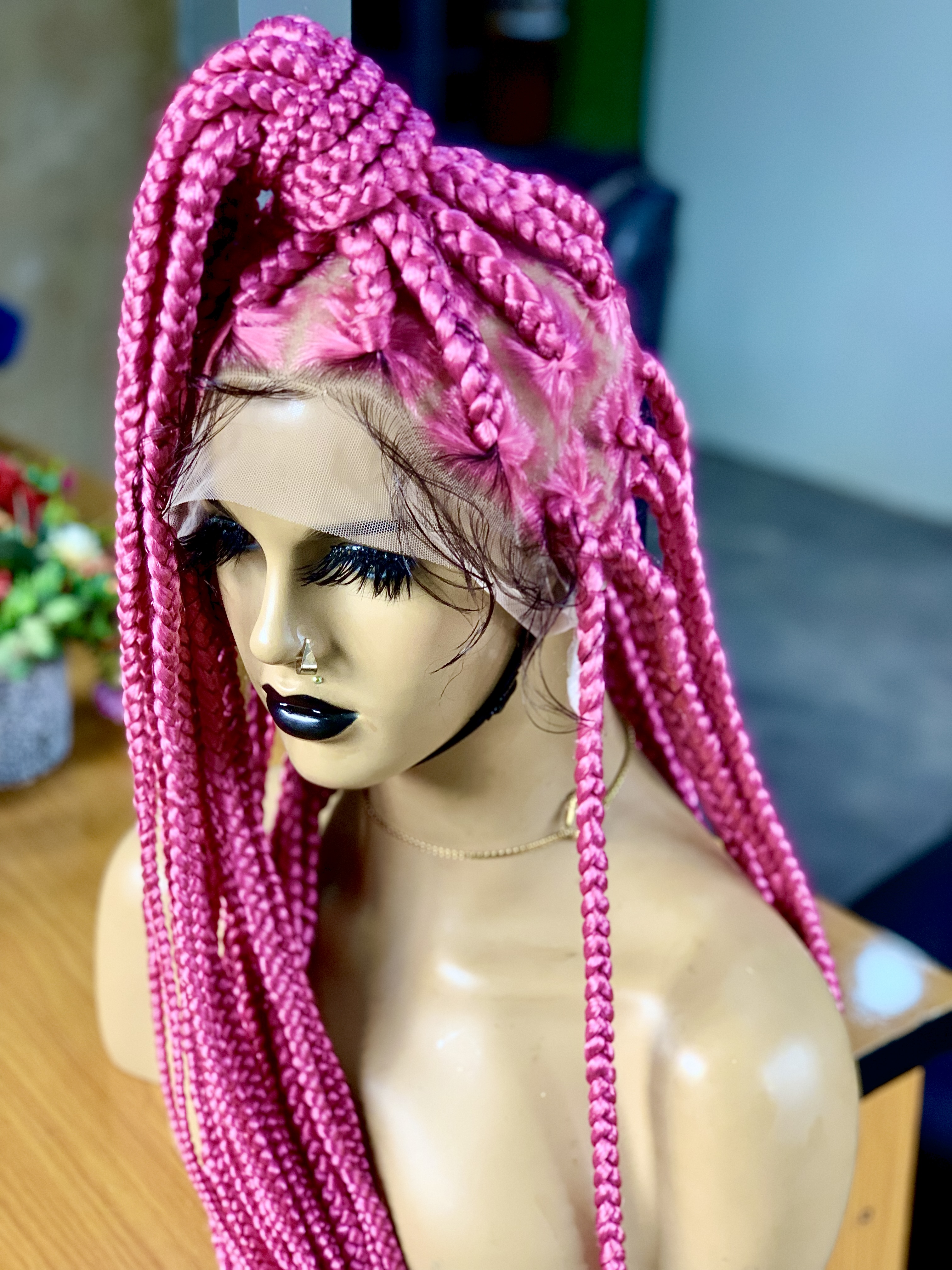 2- Jumbo Braids Pink Braided Wig – Long LengthHandmade with care, this stunning long-length braided wig features vibrant pink jumbo braids, nea