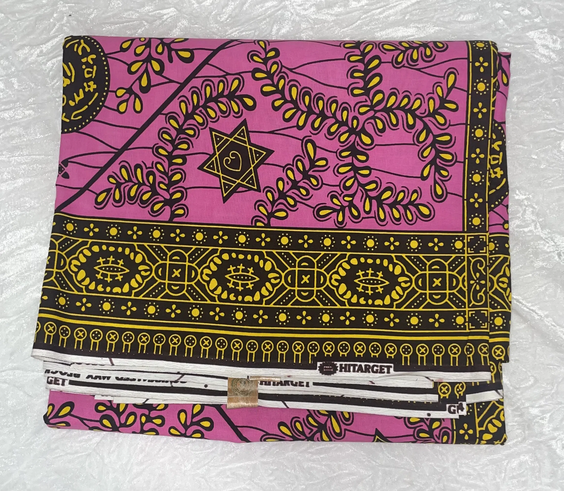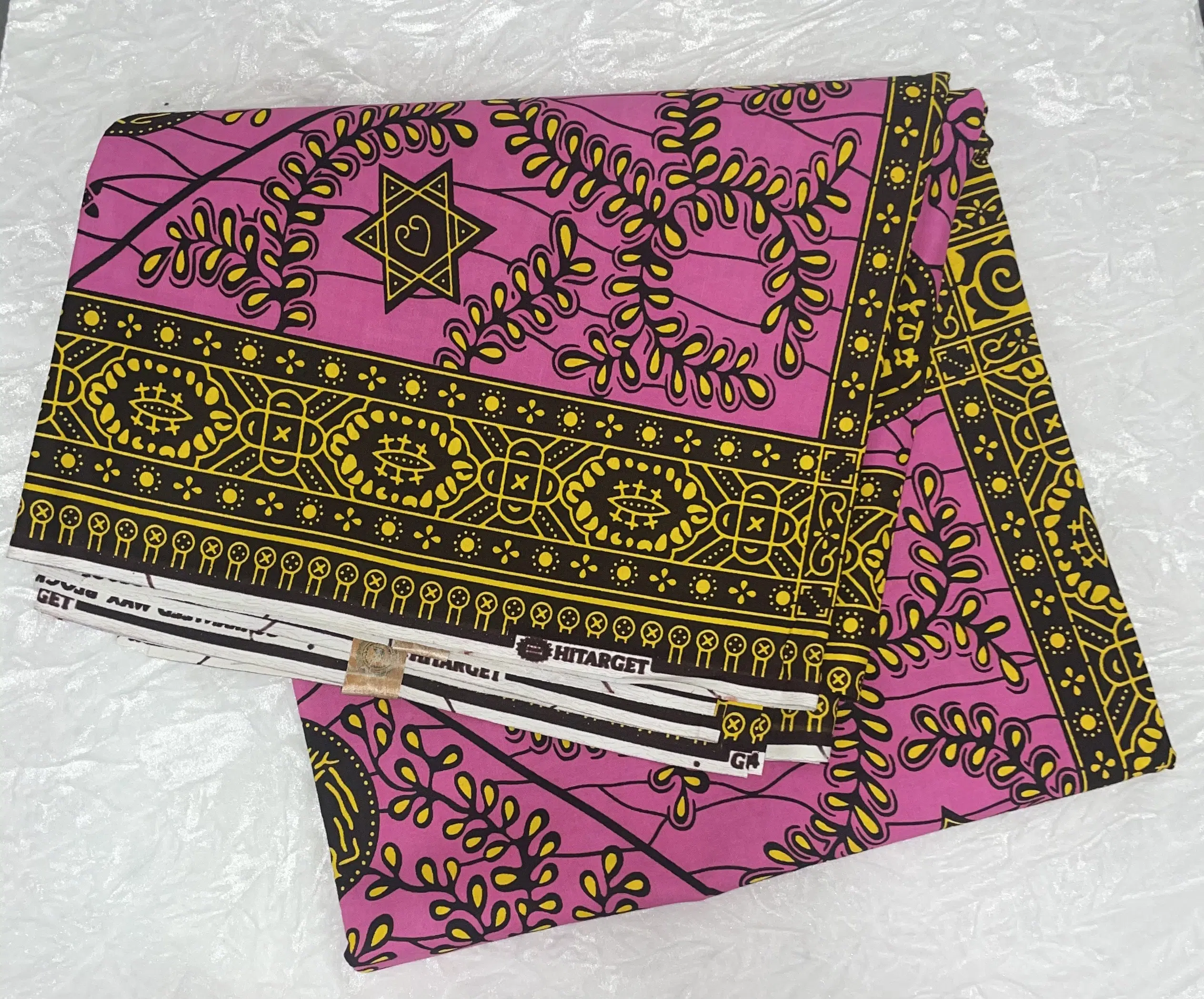 African Ankara Pink & Yellow Abstract Geometric 6 Yards VIP Fabric