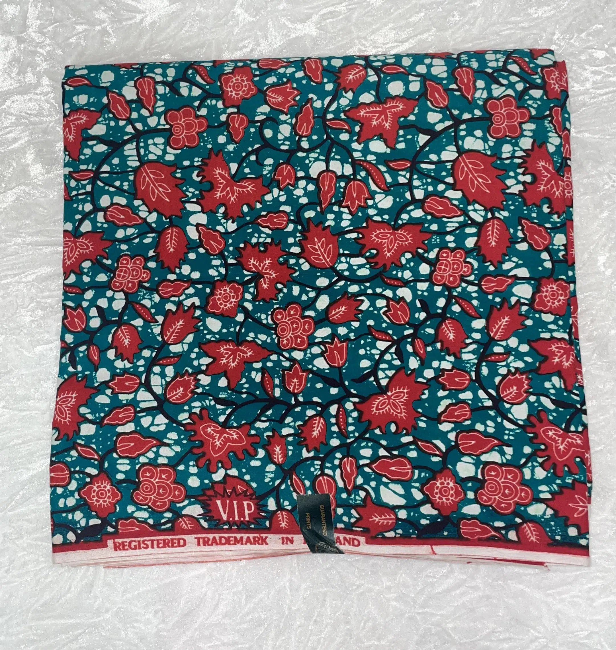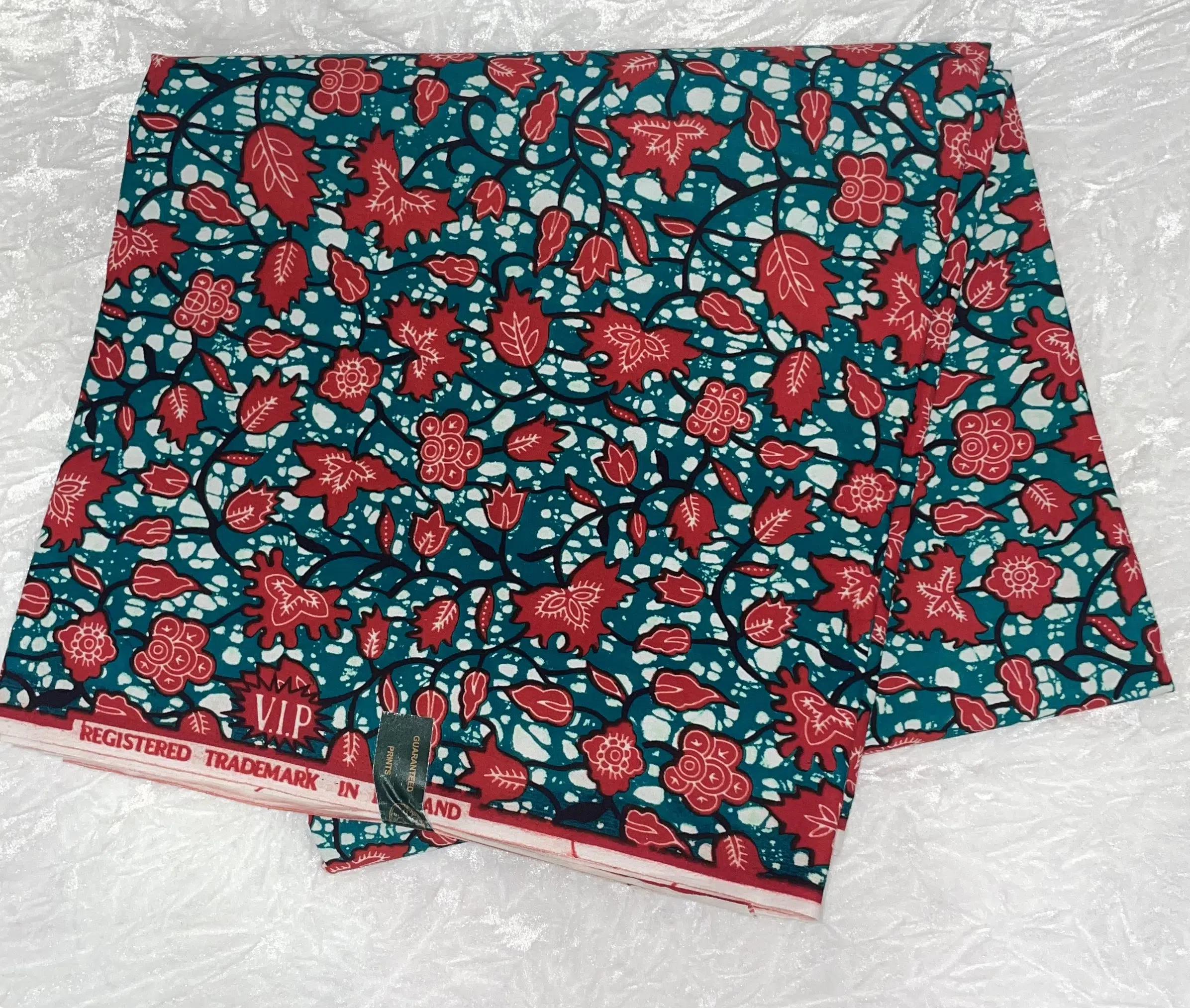 African Ankara Turquoise & Red Multi Floral Style 6 Yards VIP Fabric