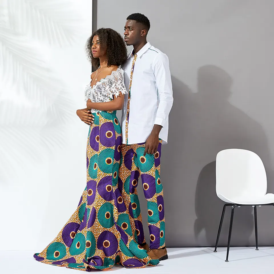 Custom African Wax Print Two Pieces Set For Men 100% Cotton Fashionable Men Shirts Casual Men Couple Party Clothes.Size: S, M, L, XL,2XL,3XL
