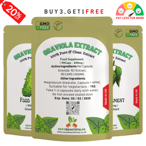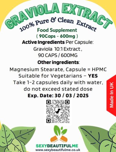 Graviola ( Soursop ) 6000mg Capsules, 10:1 Extract, Antioxidants, Liver Support